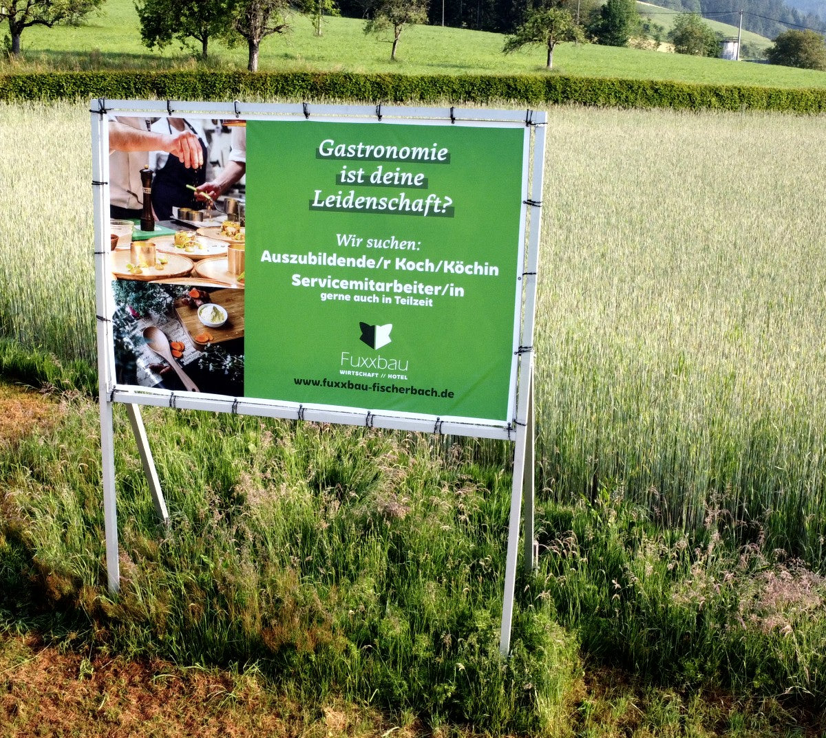 In diesem Zeitraum haben wir zahlreiche Bauschildrahmen erworben, welche sich als äußerst robust und langlebig erwiesen haben. Trotz der regelmäßigen Auf- und Abbauten sowie dem ganzjährigen Einsatz im Freien, hat keiner der erworbenen Rahmen Schäden aufgewiesen.